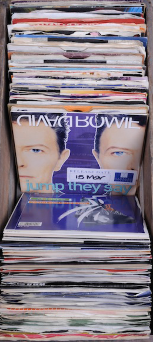 This interactive project began as a static collection of "formative" David Bowie records (depicted to the right however is now deprecated), and has been reimagined and developed into an virtual 3D record box that safely and dynmically "shelves" 11 of your last